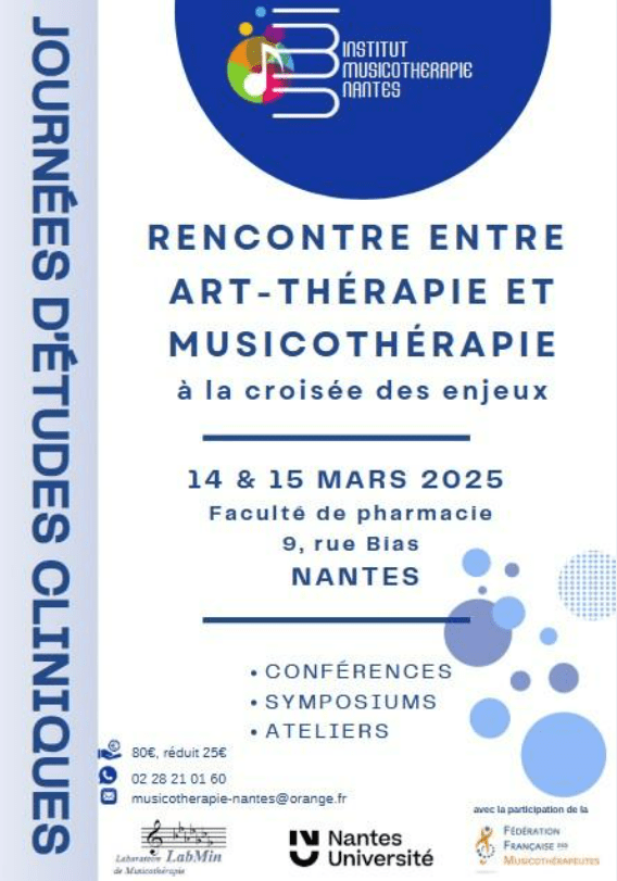 Les Journées d’études cliniques de l’Institut de Musicothérapie de Nantes se déroulent cette année les 14 et 15 mars prochains.
